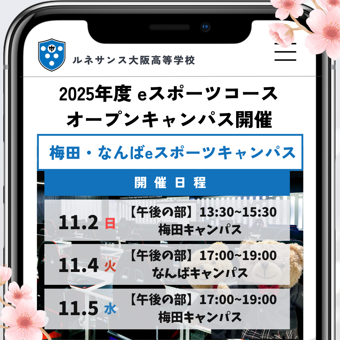 【eスポ 梅田・なんば】eスポーツコース 11月第1週オープンキャンパス実施日のお知らせ