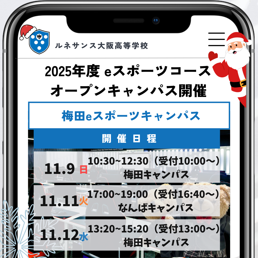【eスポ 梅田・なんば】eスポーツコース 11月第2週オープンキャンパス実施日のお知らせ
