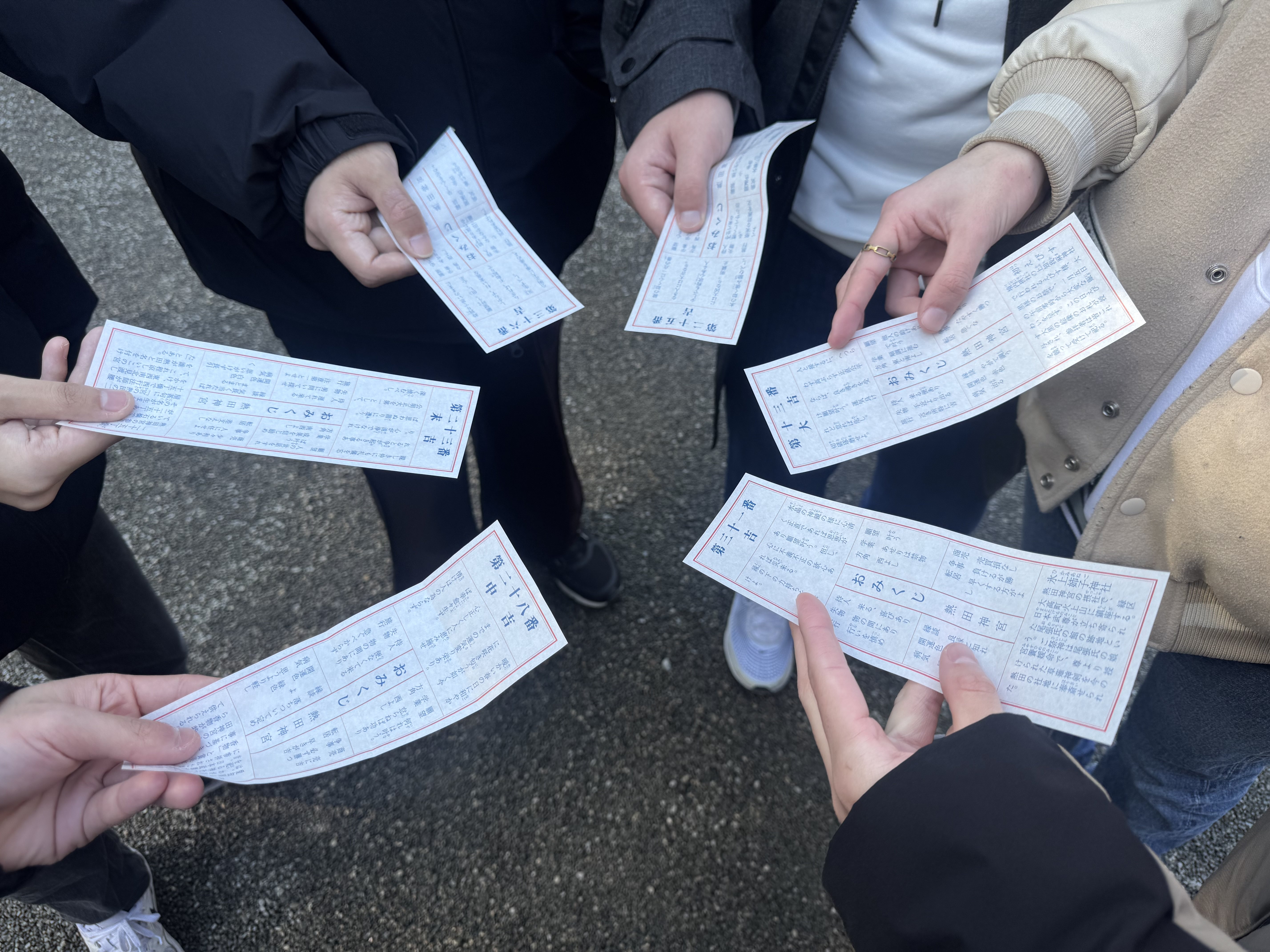 参拝をした後は集合写真を撮影して現地解散になりますが、みんなでおみくじを引いて結果を見せ合いながら盛り上がっていました!