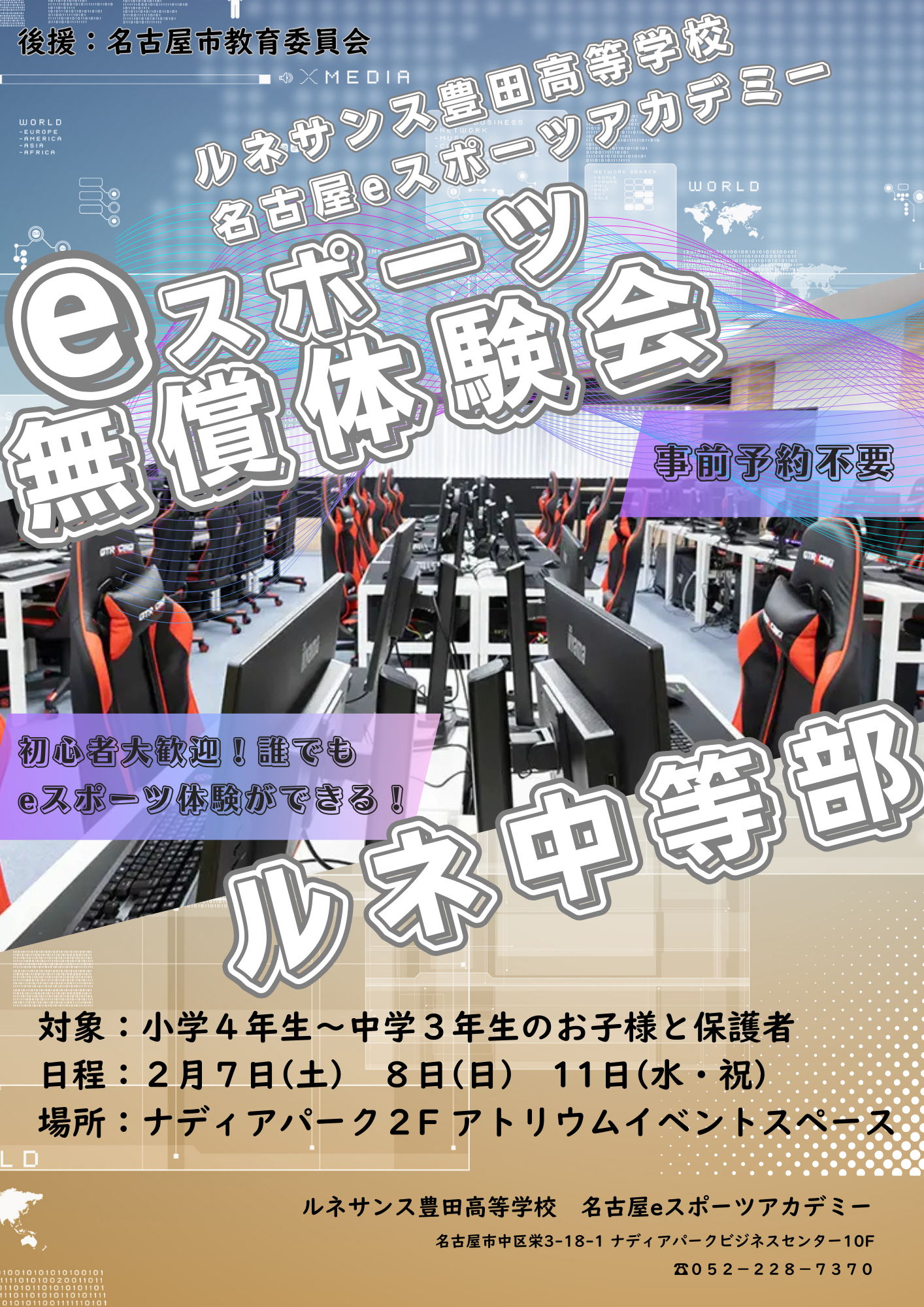 詳細はこちら⇒eスポーツ体験会(ルネサンス豊田高等学校名古屋eスポーツコース・ルネ中等部) - ナディアパーク