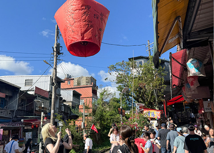 午後は十份と九份へ移動。十份では、願いごとを書いた天燈(ランタン)を青空に放つ体験を行いました。手を離す瞬間の生徒たちの表情からは、期待や感動が伝わってきました。
