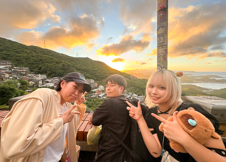 続いて訪れた九份は、映画『千と千尋の神隠し』の舞台に似ていることで知られる人気の観光地です。雨の多い地域として知られていますが、この日は天候にも恵まれ、夕日と夜景の両方を楽しむことができました。茶屋でお茶を味わったり、マンゴーかき氷を食べたりと、それぞれが自由時間を満喫し、たくさんのお土産と笑顔を携えてホテルへ戻りました。