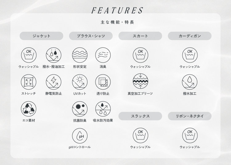新しい制服パンフレットでは、今回ご紹介した以外にも多数のコーディネートや、アイテムを掲載しております。