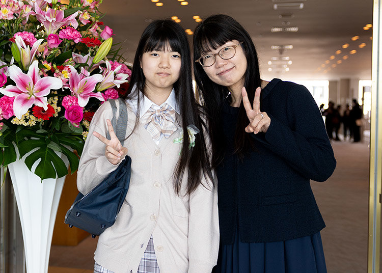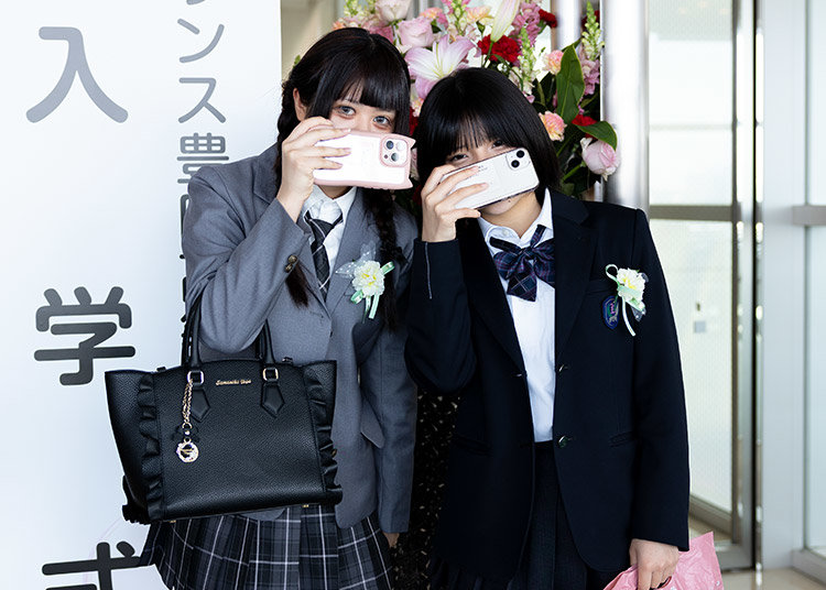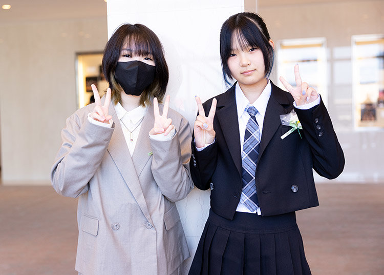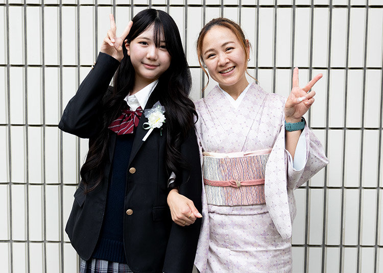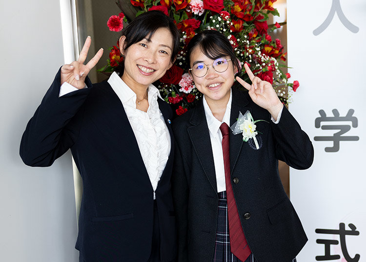 以下に、入学式の写真をいくつかご紹介いたします。各種SNSでも、入学式コーデや式当日の様子を投稿しておりますので、ぜひご覧ください。